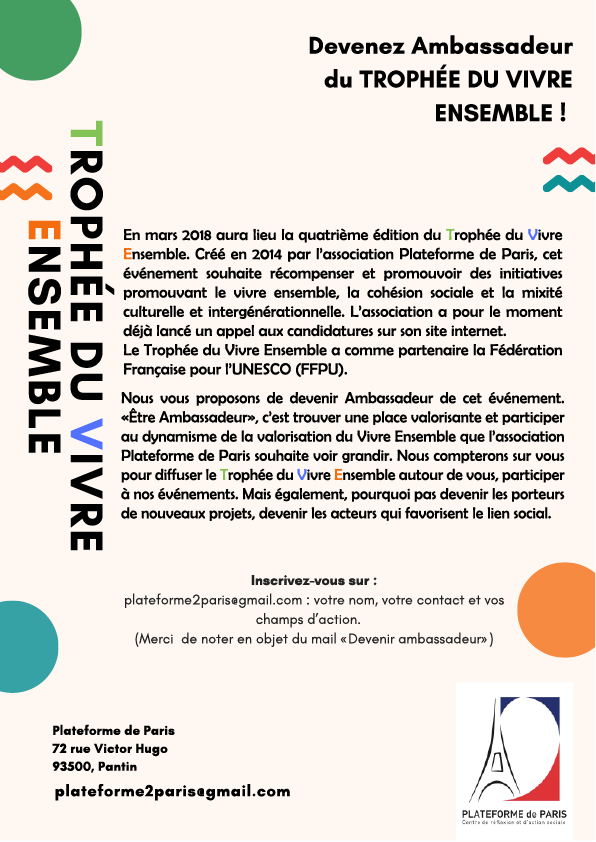 Afin de nous aider à promouvoir ce projet, nous vous proposons de devenir Ambassadeur de cet événement.