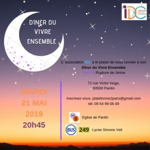 Nous avons le plaisir de vous convier à notre prochain Dîner du Vivre Ensemble qui aura lieu le:
